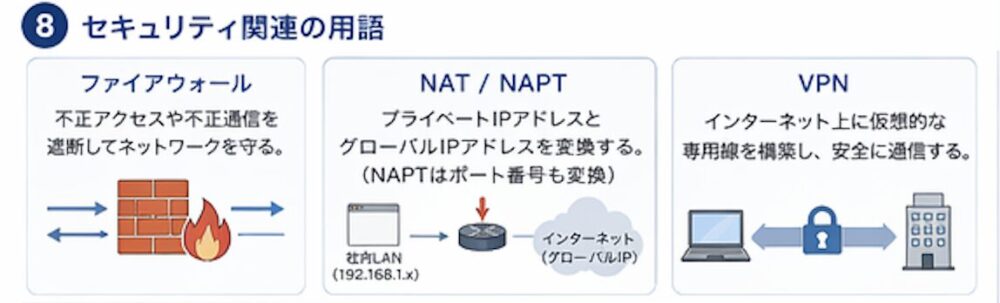 おすすめの基本情報学習教材はこちらセキュリティ関連のネットワーク用語