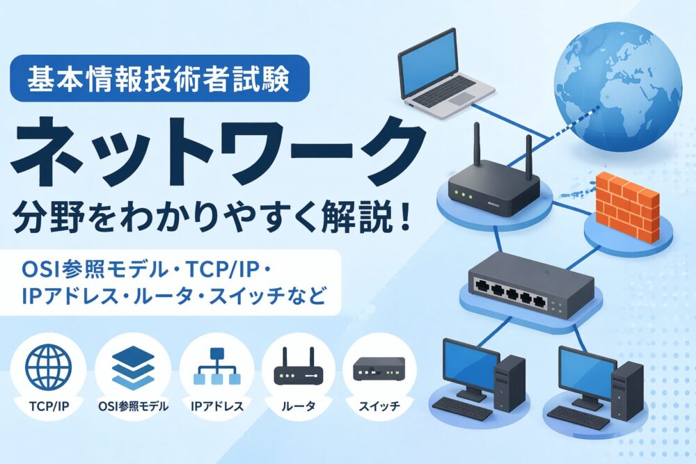 基本情報技術者試験の勉強を始めたばかりの方にとって、ネットワーク分野は「カタカナや略語が多くてとっつきにくい」と感じる分野の一つではないでしょうか。TCP/IP、サブネットマスク、DNS……。初めて目にする用語ばかりで、テキストを開いた瞬間に心が折れそうになった方もいるかもしれません。しかし、ネットワークの用語は日常的に私たちが使っているインターネットの仕組みそのものです。身近な例に置き換えて理解すれば、決して難しくはありません。本記事では、基本情報技術者試験のネットワーク分野で頻出する重要用語を、初心者にも分かりやすく丁寧に解説していきます。
