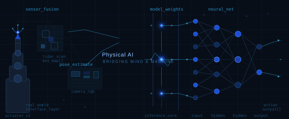 Physical AIとは、物理世界の法則を理解し、現実空間でロボットや機械を通じて行動するAIの総称です。従来のAIが主にデジタル空間の中で完結していたのに対し、Physical AIは「重力」「摩擦」「衝突」「温度」といった物理法則を踏まえたうえで判断・行動を行う点が大きな違いです。